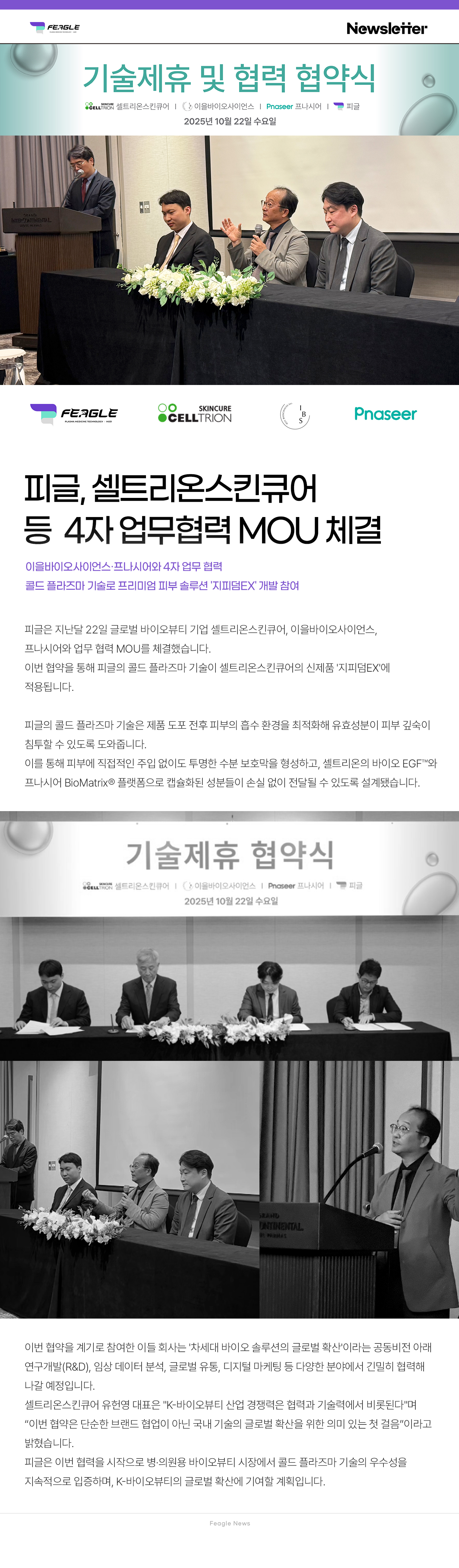 (주)피글, 셀트리온스킨큐어·이을바이오사이언스·프나시어와 업무 협력 체결